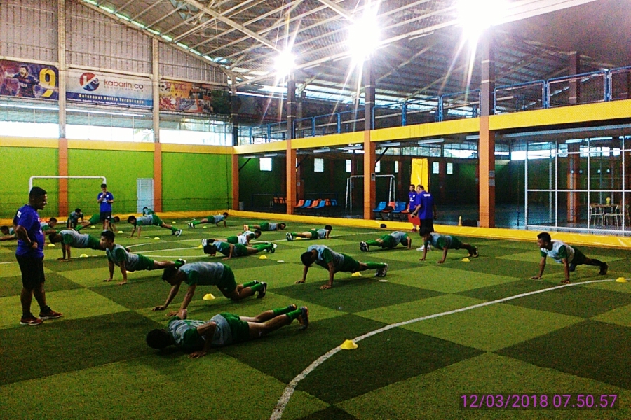 Robby menambahkan tim pelatih juga memberikan variasi penyiapan kondisi fisik pemain dengan menu sentuhan bermain. “Sore ini (Senin, 12/3), kita variasikan dengan sentuhan bermain di lapangan. Jadi ada perpaduannya,” lanjutnya.
